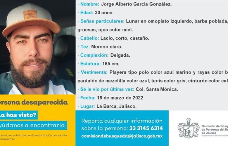 Decisiones.- Familiares de Jorge Alberto García González solicitan a la comunidad de la Ciénega su ayuda para localizarle. La última…